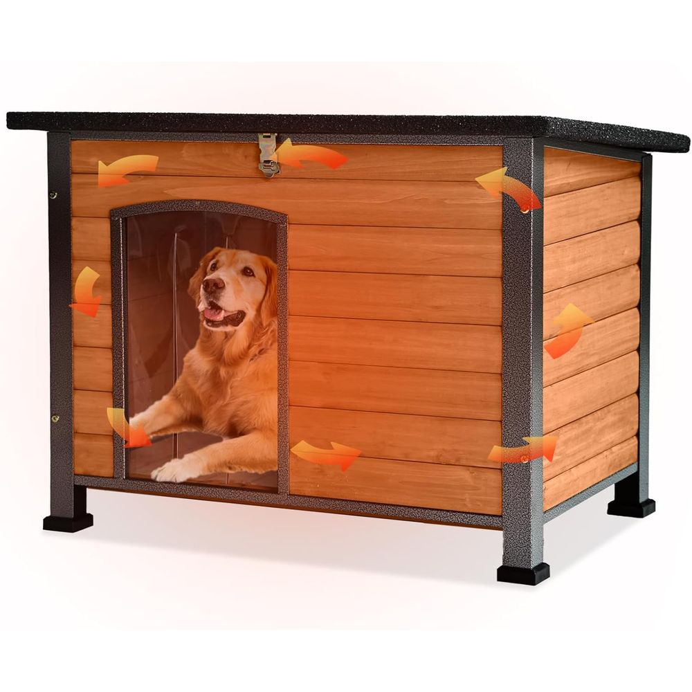 ANTI-CHEWING METAL E DESIGN: This outdoor dog house combines solid wood panels with a heavy-duty metal e—each panel is ully ed in metal and secured by metal conting bars, mg the structure much sturdier than dog houses with thin trims or plain wood. The upgraded metal reinorcement is also designed to resist chewing and destruction, so you won’t have to worry about your pup damaging their shelter even as they ollow their natural chewing instincts